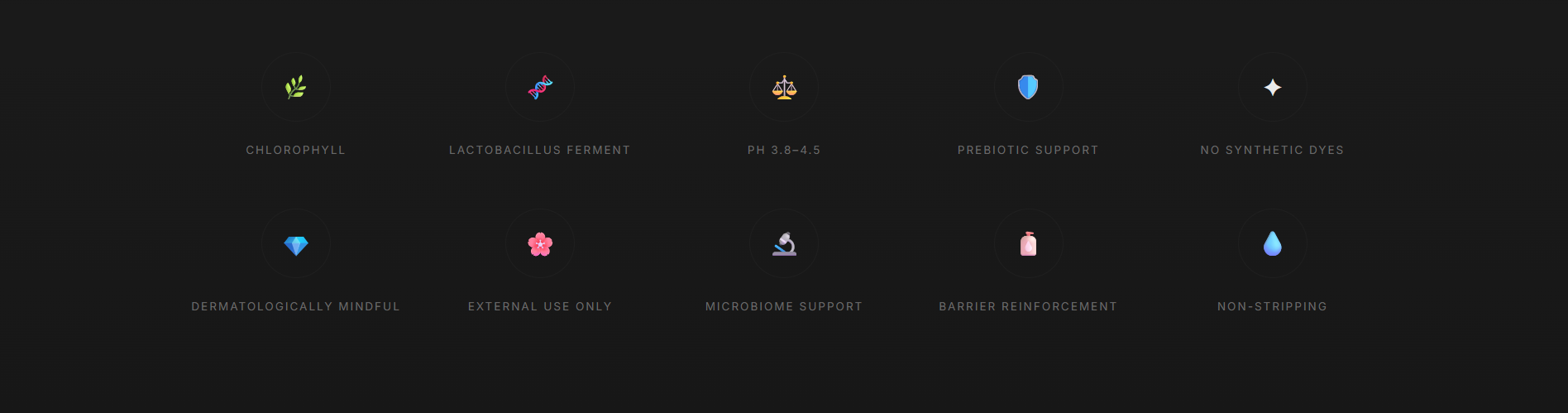 Every formulation is crafted with plant-based actives and microbiome-safe science to nurture, not disrupt.